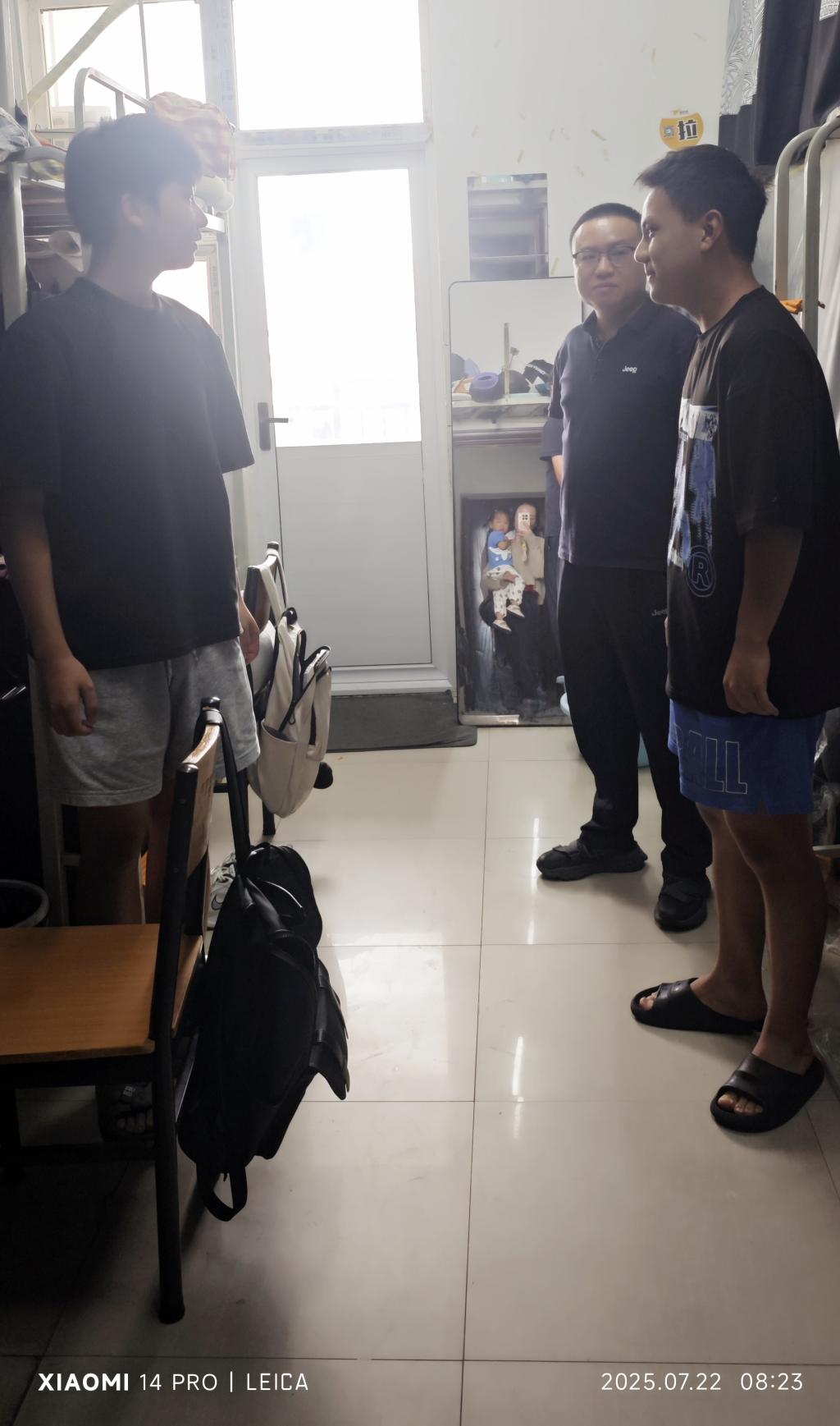 (通讯员:赵湘)为了深入了解留校员工考研备考情况,以及学习生活方面的困难,2025年7月22日上午,公司常务副经理郑瑞丰、学工办主任赵湘深入员工宿舍,实地走访慰问暑期留校备考员工。