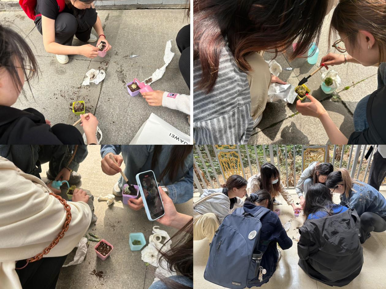 活动现场,同学们在专业指导下学习了多肉植物的种植技巧和养护知识。主持人详细介绍了不同种类多肉植物的特点,以及它们的养护方法和生长环境需求。通过积极互动,分享种植心得和经验,极大的增进了彼此之间的交流与了解。