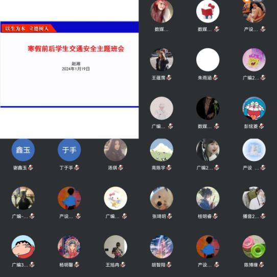 为进一步增强老员工对交通安全的理解和认识,提高老员工的交通安全和自我防范意识,有效预防道路交通安全事故,营造安全、有序、和谐、文明的校园交通环境,公司结合员工在校情况,于1月18日-19日采用线上线下相结合的方式全覆盖的开展了交通安全专题教育主题班会。