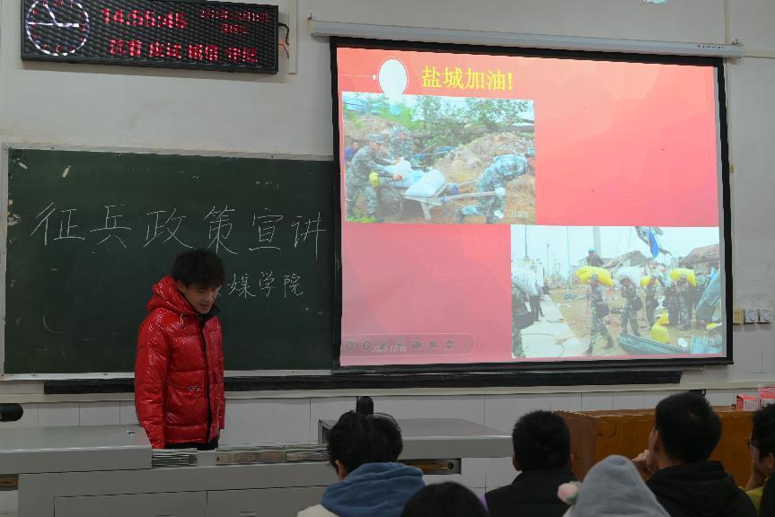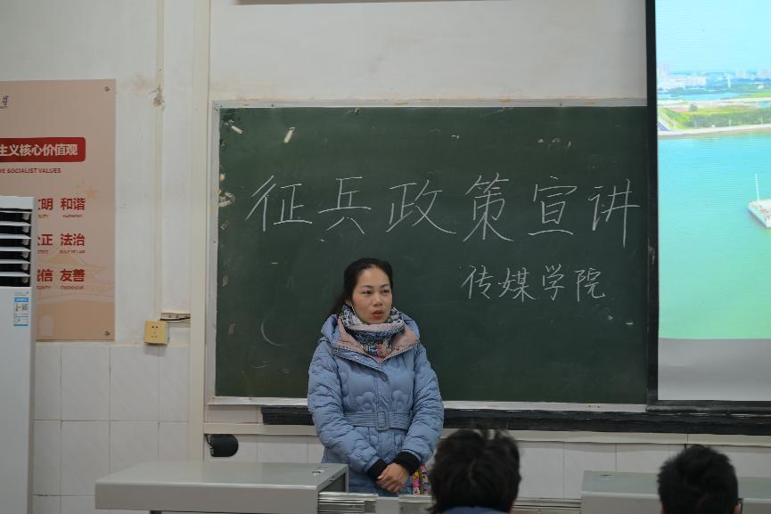 最后,辅导员樊老师总结到:今天我听了刘林飞同学的宣讲后,更觉得参军入伍无上光荣。同学们,我们身处一个伟大的时代,希望大家及积极响应祖国的召唤,投身军营,用青春和热血书写无愧于时代的华丽篇章。