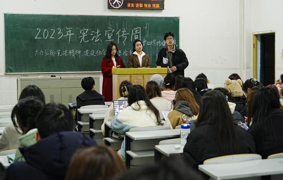 (通讯员:王珺珂、张文熙;摄影:章浩然、胡雨萌、段宇齐)为认真学习贯彻党的二十大精神,贯彻落实习近平法治思想和习近平总书记关于宪法法治教育的重要指示精神,正值第十个国家宪法日之际,韦德官方网站bevictor韦德国际于12月3日晚上在西校区五教101、102教室开展《宪法伴我们成长》歌曲传唱活动和12月4日上午在西区五教103教室开展国家宪法日教育系统“宪法晨读”活动以及学习宣传法治教育活动。