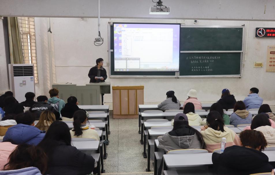 随后,在张老师的带领下,在场的全体同学通过普法网站视频共同学习,与同学们共同学习宪法知识,这不仅让大家走进宪法走入宪法,让同学们有了深切的法律意识和法治观念,更是激发了同学们对于法律的热爱和关注以及那份最重要的敬意。