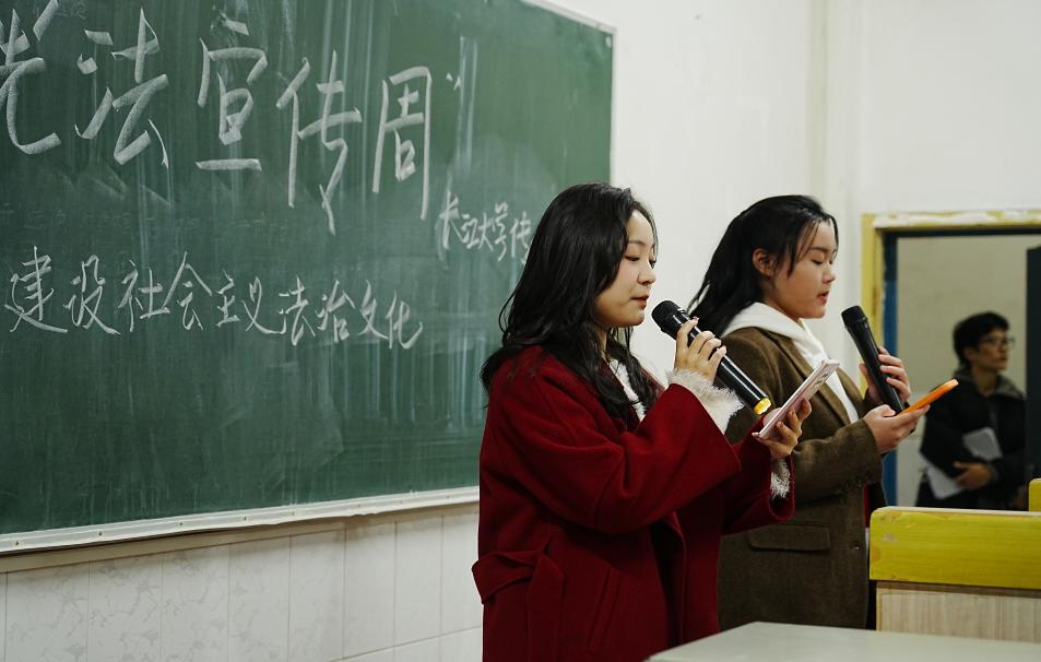 活动伊始,12月4日上午全体同学肃然起立,在张文熙老师的带领下唱响《宪法伴我成长》。正如里歌词中说的那样“乘着宪法的翅膀,我们一同飞翔。”宪法是国家的根本法,是治国安邦的总章程,身为新时代的青年人更应该以法为则,传承着星星火炬,为祖国注入新鲜的力量。在一声声坚定亦希望的歌声里,同学们的学习热情被活跃带动,本次活动正式拉开帷幕。