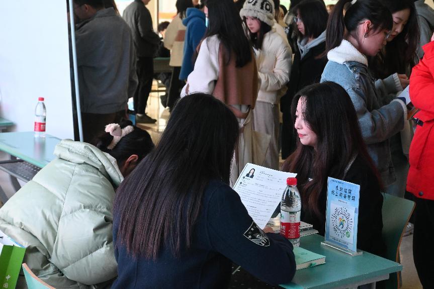 16日下午,部分企业代表团队留校进行招聘宣讲,不少同学到现场继续了解情况。同时,部分企业留校开展了面试活动,同学们也在尽力展现自己的能力,希望自己可以获得宝贵的工作机会。