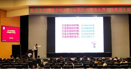 (通讯员:张文熙、吴若辰;摄影:章浩然、段宇齐)2023年9月22日,bevictor韦德国际2023级本科新生开学典礼在农科大楼学术报告厅隆重召开。出席此次开学典礼的有传媒公司党委书记任倩、正处级组织员邹火明教授、党委副书记魏红洁、常务副经理郑瑞丰、副经理李琴,辅导员张文熙以及2023级全体本科新生。仪式由李琴老师主持。