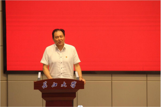 党委书记邹火明借用李白的《渡荆门送别》、《黄鹤楼送孟浩然之广陵》来表达自己的情意,并借其韵和诗一首送别毕业生:“学子欣辞黄鹤楼,仲夏五月赴九州。汽笛一声晴空里,长江汉水写风流。”邹书记还和同学们分享了河北高考生任旭明和母亲的故事,告诉同学们要时刻心怀感激,保持善良;又讲到 “地铁偷拍门”的新闻案例,告诫大家要有高度的法律意识和更成熟的心智。他寄予同学们要继续发扬勤奋、刻苦、拼搏的精神,真正做到“知行合一、德艺双馨”,为中国传媒事业的发展贡献自己的青春力量。