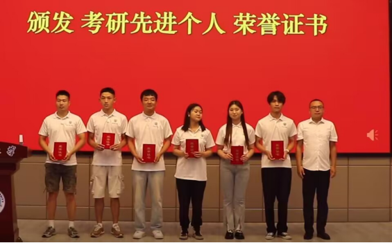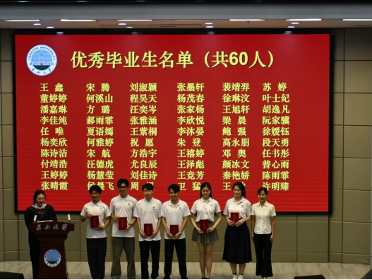 典礼在庄严的国歌声中拉开帷幕。党委副书记魏红洁为公司60位优秀毕业生颁发荣誉证书;常务副经理郑瑞丰为29位考研先进个人进行了颁奖。