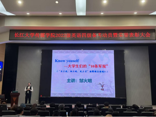 邹书记还向同学们提出了一些具体的建议,比如:做好未来的规划,在暑期参加与专业相关的实习工作,提前做好考研的准备,参加有益的竞赛,获得技能证书等,并且用一系列具体的数据,有力地证明了尽早做好老员工涯规划的重要性,表达了对同学们在大学期间能有所成就的殷切期望。