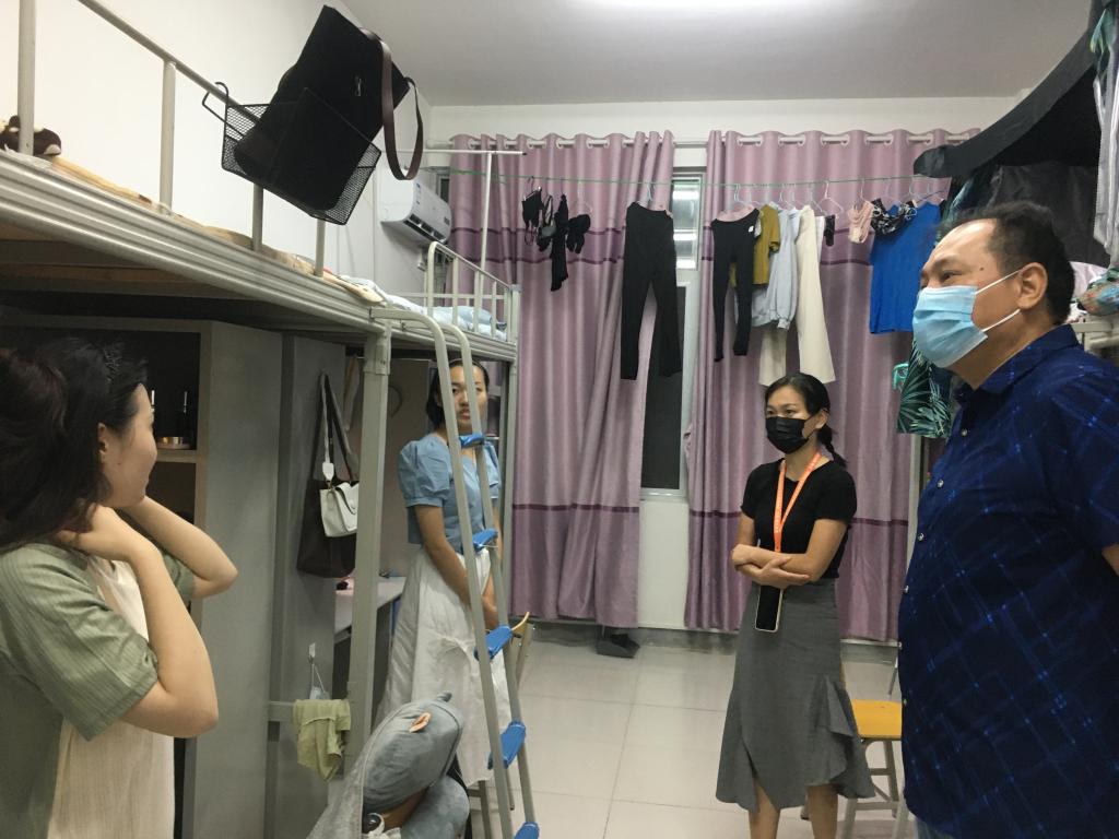 (通讯员:郑瑞丰)2021年8月29日晚上7点,艺术与传媒公司党委书记邹火明、副书记魏红洁、副经理郑瑞丰、办公室主任刘武洋以及辅导员李皓老师深入华林员工公寓宿舍楼看望返校老生和专升本新生。