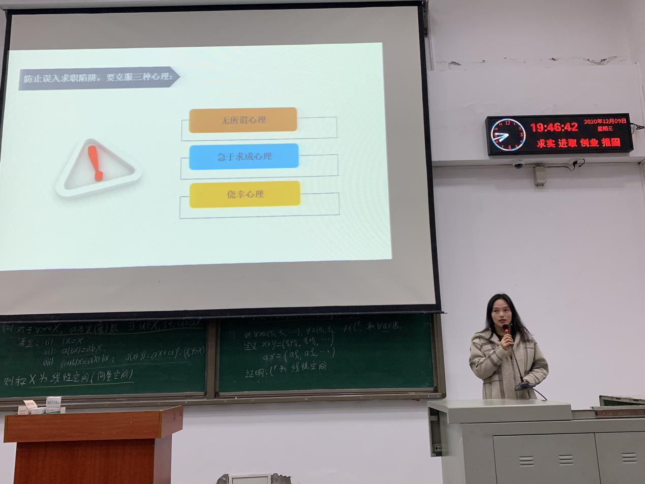 (通讯员:蒋萌)为了做好2021届毕业生就业教育与指导工作,帮助广大毕业生全面客观的认清当前就业形式,进一步转变毕业生的就业观念,提升就业应聘技巧,全面提高毕业生就业能力,艺术与传媒公司于11月13日下午在武教A101教室开展了就业指导工作专题讲座,讲座由公司毕业班辅导员蒋萌老师主讲,公司2021届全体毕业生参加此次讲座。