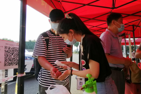 根据集团防疫工作要求,志愿者指导同学们有序排队,保持距离,同时开展体温测量、行李消毒、检查健康码、核验信息等流程化工作,工作现场井然有序,有条不紊。