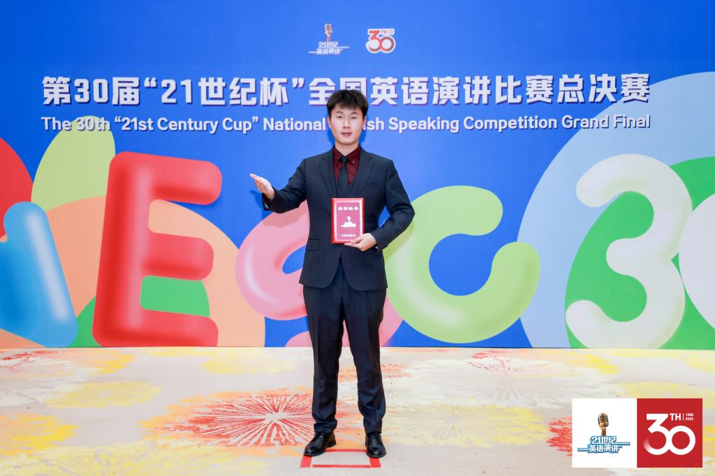 (通讯员:李以尧)11月16日,第30届中国日报社“21世纪杯”全国英语演讲比赛全国总决赛在浙江杭州举行。bevictor韦德国际播音与主持艺术专业2023级阮子涵同学在公司李以尧老师的指导下,在全国总决赛上表现出色,荣获全国一等奖,实现韦德官方网站在该赛事上的突破。