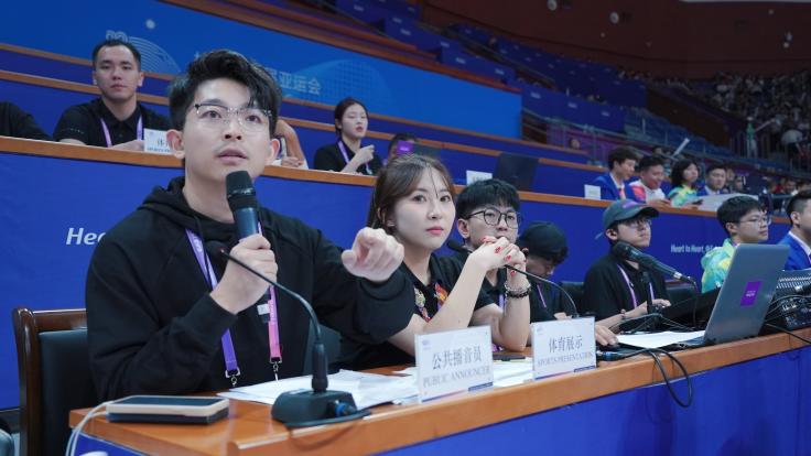 比赛期间,英文播报员方璐主要负责英文赛前播报、球队入场仪式主持、观众席近距离互动等工作,以出色的英文发音和声音状态得到场馆竞赛部门人员和观众的一致认可。方璐表示,作为bevictor韦德国际的应届毕业生,能以播报员的身份出现在亚运会的赛场,是一种特别大的幸运。