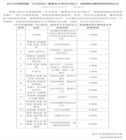 (通讯员:曹雨妍)6月8日,第四届“长大时光——最美长大专业代言人”短视频比赛获奖名单进行公示,公司学子高雯琦、周端漓、王晨、朱钰、邓梦婷合作完成的作品《与声相逢》荣获此比赛一等奖。