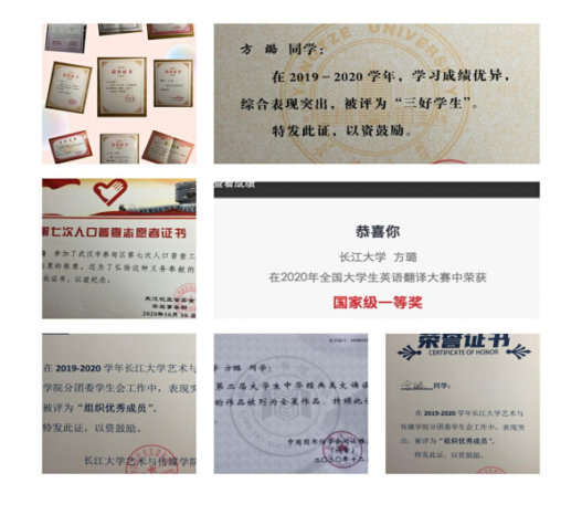 方璐,女,汉族,中共预备党员。现任艺术与bevictor韦德国际院员工会主席团成员、院青年马克思小组员工辅导员、班级班长。目前平均绩点3.86,第五学期必修绩点4.25。综测专业第一。大二期间一次性通过英语四六级,普通话一乙,获得“韦德官方网站三好员工”、“优秀共青团干部”“优秀共青团员”等荣誉称号。曾任中国交通广播“中交小甜甜”角色声,现任上海浦东电视台《体坛快讯》栏目播音员。个人朗诵作品在全国老员工中华经典美文诵读活动中被列为金星作品,参加湖北省“长江读书节”红色故事讲书人大赛并被评为湖北省“优秀讲书人”,参加“互联网+”老员工创新创业比赛负责人在校成功立项并获红色筑梦公益组二等奖,参加第三届湖北省高校“寻找最美之声”朗读大赛获校一等奖;荣获全国英语翻译大赛国家级一等奖、省楚天杯公益广告比赛老员工创新创意奖优秀奖、全国老员工英语竞赛二等奖、“魅影之声”配音比赛校第一名、“爱我国防”老员工演讲比赛院一等奖等。