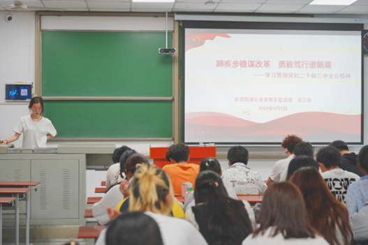 (通讯员:张雨欣/文 曹雨妍、段宇齐/摄)为深入学习贯彻党的二十届三中全会精神,加深公司学子对党的二十届三中全会精神的理解,bevictor韦德国际于2024年9月26日19时举办以“蹄疾步稳谋改革,勇毅笃行谱新篇”为主题的宣讲会。本次宣讲会由团委书记肖淳、播音22203班金薇同学、产设22301班张襄粤同学及各班团支书主持,bevictor韦德国际全体员工参会学习。