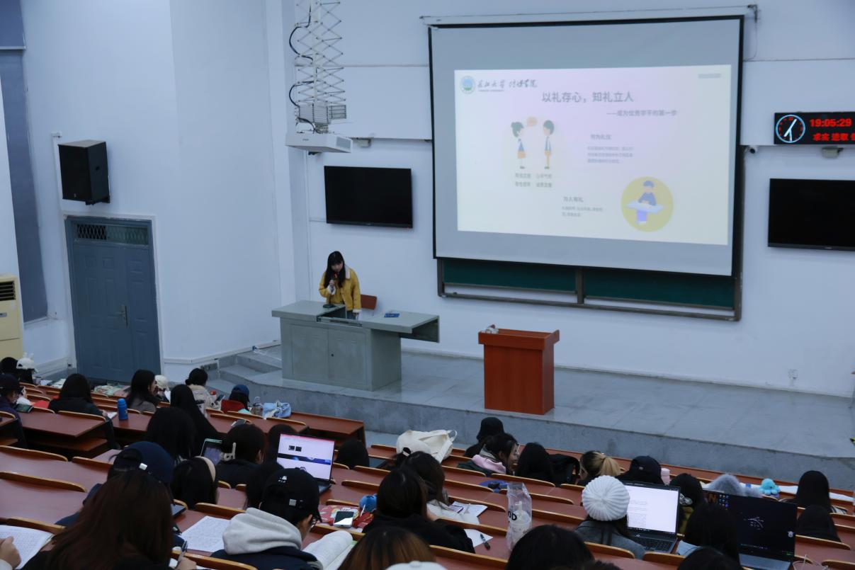 培训伊始,主讲人陈妤婕提出“以礼存心,知礼立人”是成为一名优秀学干的第一步,并引导在场员工干部在生活及工作中深入理解与践行该理念,做到为人有礼。随后,她从“一种精神”、“两种意识”、“三种方法”与“四项能力”四个方面展开阐述,强调员工干部应具有奉献精神与服务意识、自律意识,在工作中吸取经验教训的同时明确方向,不断提升自己的沟通能力、组织能力、协调应变能力与心理调节能力。培训最后,陈妤婕与在座员工干部共勉:任何事,必作于细,也必成于实。
