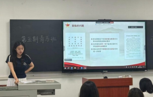 随后,团委书记肖淳介绍了青马班的办学基础、面临挑战、改革思路及实施方案,强调青马班的培养机制以及淘汰机制。