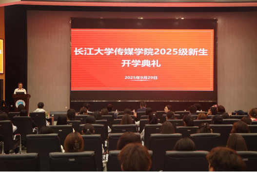 2025级新生代表范思贤随后发言。她引用“青春由磨砺而出彩,人生因奋斗而升华”与在场同学共勉,号召大家做“有信仰、有温度、有行动”的新时代传媒人,用镜头记录时代,用创意点亮未来。