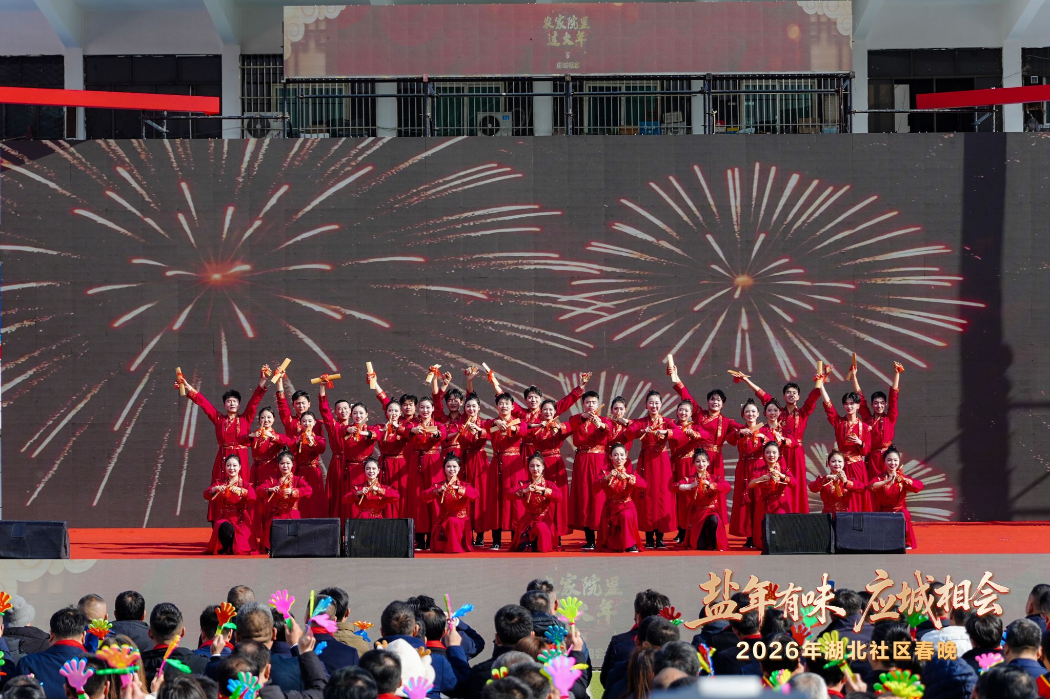 韦德官方网站bevictor韦德国际师生带来的快板舞《喜贺新春送福来》,将传统快板的清脆韵律与舞蹈的灵动姿态完美融合,唱词中既融入“马年吉祥”“国泰民安”的新春祈愿,又巧妙呼应应城非遗民俗与乡村美好生活,极具观赏性与感染力。