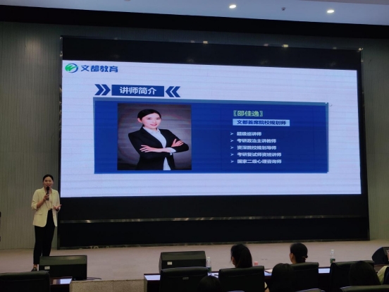 由文都考研的专家邵佳逸老师分析了现阶段考研的趋势,并为员工们详细讲解了院校选择、专业选择、考试大纲、考试内容以及备考策略和应试技巧。在现场,邵佳逸老师还就员工的问题做了解答,帮助员工明确目标,坚定信心。
