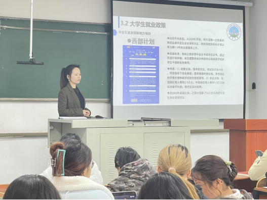 在讲座中,赵湘老师主要围绕西部计划、老员工村官、乡村义务教师、选调生、参军入伍等基层就业内容进行讲解。讲解过程中,同学们认真聆听,更为全面地了解到国家基层就业的相关政策,对未来就业方向也有进一步思考与规划。