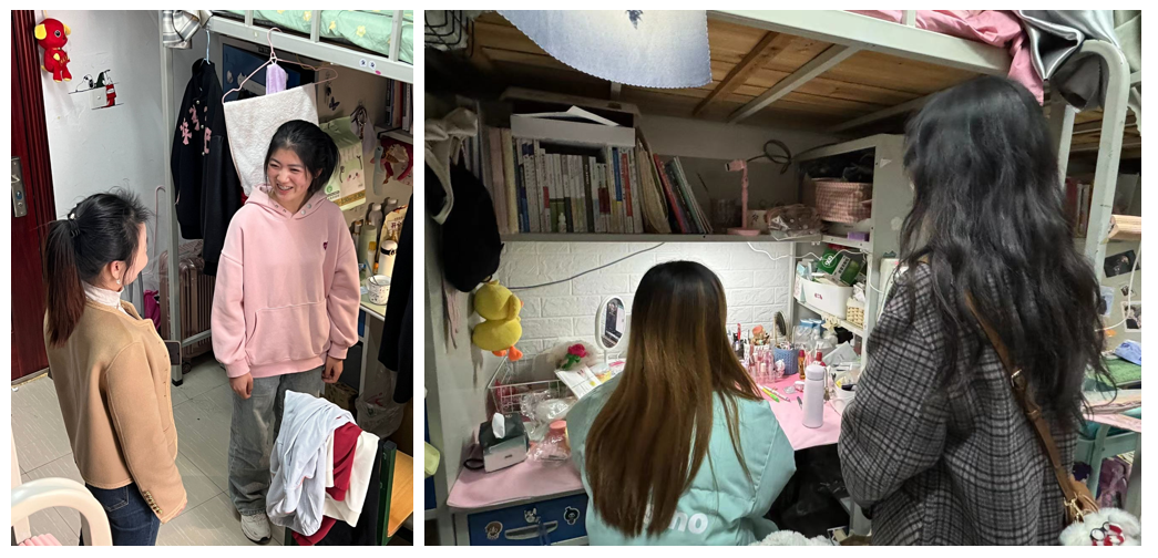 在本次查寝过程中,员工会成员仔细检查各宿舍的卫生状况,深入细致地排查各个宿舍的安全隐患,对潜在问题进行处理。各辅导员也深入宿舍,与重点员工就近期动态进行谈话谈心,为同学们解答生活与学习中遇到的问题,提醒同学们及时报考四六级考试。最后,辅导员再度强调消防安全、财产安全与交通安全的重要性,并提醒同学们严防诈骗。