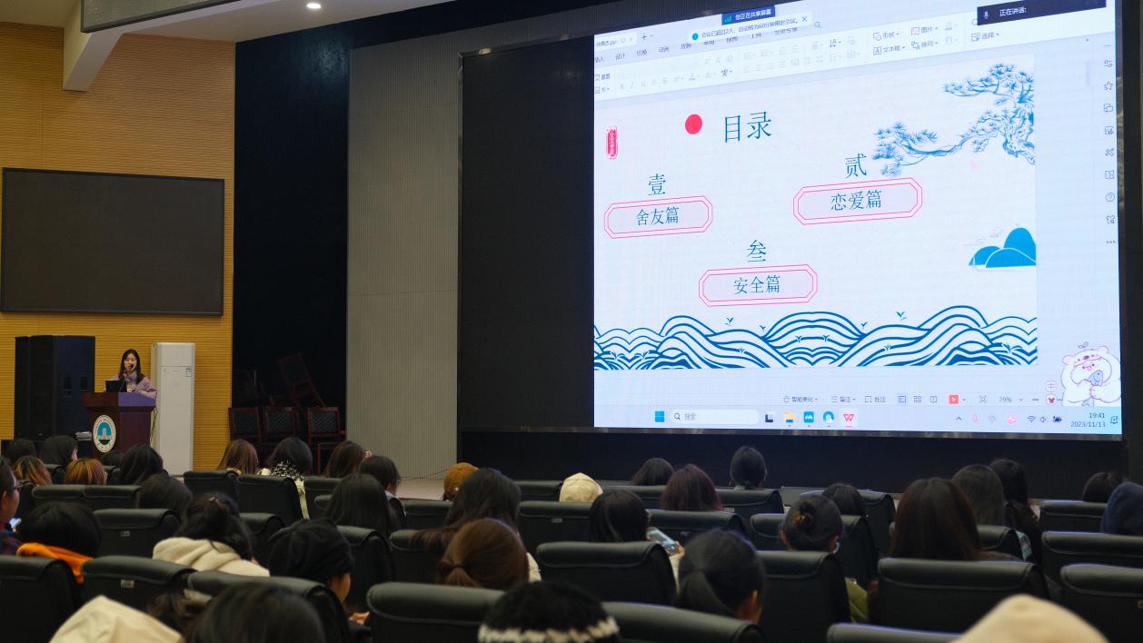 (通讯员 朱秋子、张文熙、樊凡;摄影:何风燕、胡雨萌;)2023年11月13日晚,bevictor韦德国际2023级“女生讲座”于西校区农科大楼1058报告厅开展。23级本科及专升本所有女生参加了此次讲座,公司员工心理健康教育中心的徐潞杰老师带来了一次令人受益匪浅的精彩报告。