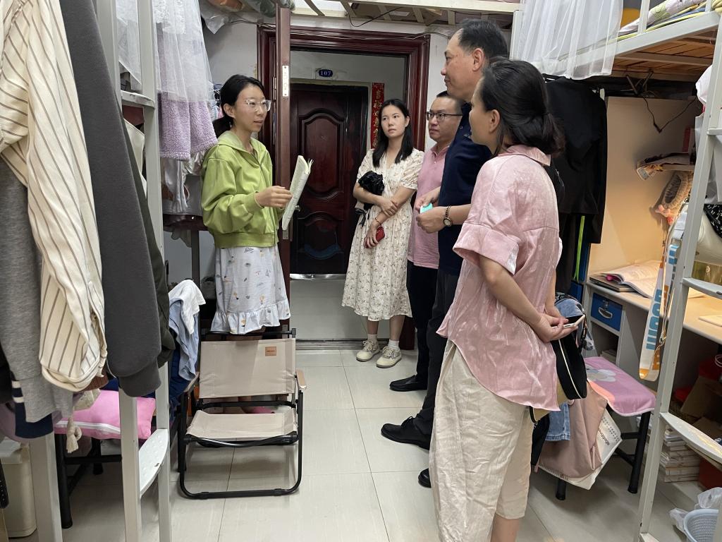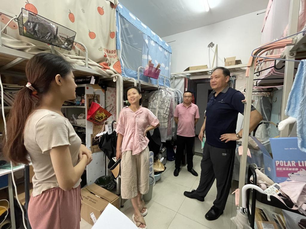 领导们逐一走访了暑期留校员工的宿舍,了解员工目前学习、生活和身心状态,并针对暑期生活及考研安排进行指导,协助解决员工面临的实际困难,疏解员工考研压力。随后,对同学们进行了暑期安全教育。