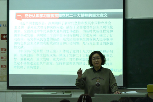 随后,李琴老师向同学们讲述了如何全面准确地学习领会党的二十大精神,并与同学们交流分享了自己学习成果,为公司师生深入学习领会党的二十大精神做出了良好表率,激励在场同学们对党的二十大的内容和精神进行更深层的了解。