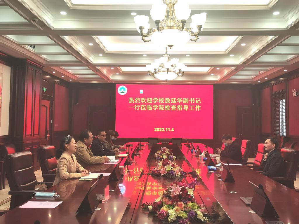(通讯员:郑瑞丰)2022年11月4日上午9点30分,韦德官方网站党委常委、副书记敖廷华,人事处处长蒋四华一行莅临公司检查指导工作,公司党委书记邹火明、党委副书记魏红洁、副经理郑瑞丰,学工办主任赵湘、教学办主任饶艳芹、办公室主任刘武洋参与调研活动。