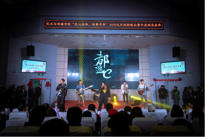 各种形式的演出异彩纷呈。在《有一种悲伤》节目组的双人舞中,透过歌曲和舞姿,将每个人心中的遗憾和悲伤留在了此刻,留在了当下,留在了2019。十点半乐队的表演又将每一个人的激情激发,冲破遗憾,冲破悲伤,冲向2020。配音秀《神奇一甲在哪里》完美展现出艺传公司的艺术特色,由配音社代表人员演出,给观众带来一场听觉盛宴。最后,也是最神秘的节目——《我和我的祖国》和《爱因为在心中》两首师生大合唱,由公司13位青年教师,带领一批员工,献唱祖国的七十寿诞,献唱我们共同的母亲。