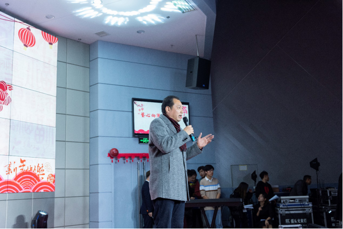一曲舞毕,艺术与bevictor韦德国际邹火明书记的上台讲话。邹书记代表公司领导上台表达新的一年对艺传公司的新年祝福。他以青春,母校,国家为三个基点,告诉我们需要善待青春,感恩母校,赞美祖国。