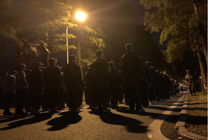 军体拳表演尽显艺传学子的飒爽英姿,一招一式虎虎生威,夜训下的你们,熠熠生辉,灯光下的影子,彰显军人风采。