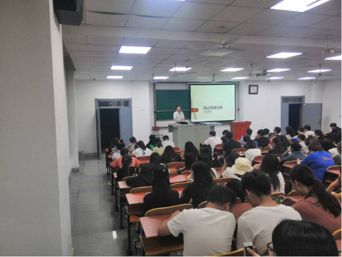 2019年6月21日晚,公司在B教109开展就业指导系列讲座,邀请了武汉某传媒公司人力资源部夏经理作为主讲,就该公司招聘的总体成效及自身体会与员工进行了互动交流。全体2020届毕业班员工参加了这次讲座。