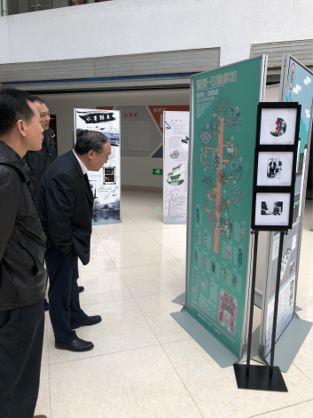 “安徽宏村—新旧并存的村庄”展板前,谢董事长说,学艺术的同学,总是会有独特的视角和新的发现。