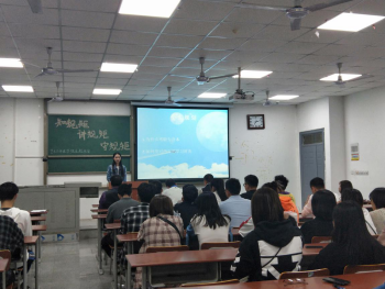 10月11日晚19:00,武汉校区A103教室座无虚席,公司党委书记邹火明,常务副经理戴德铸,副经理梅国海参加了视觉传达设计、数字媒体艺术专业大三年级员工的“知规矩、讲规矩、守规矩”主题班会,班会由辅导员赵湘老师主持。