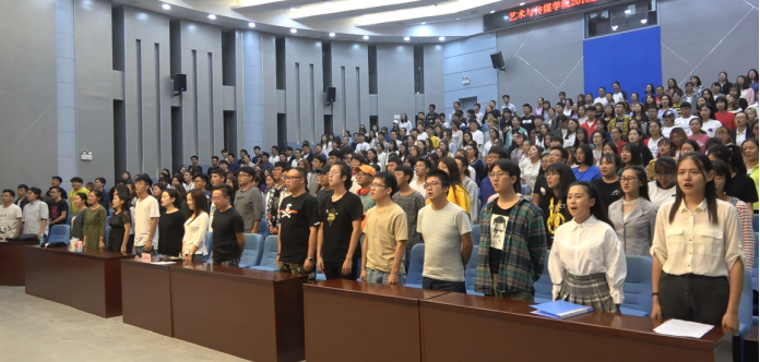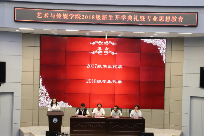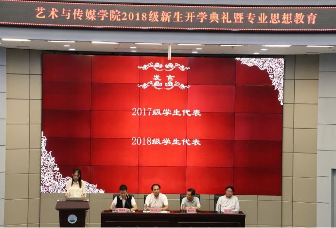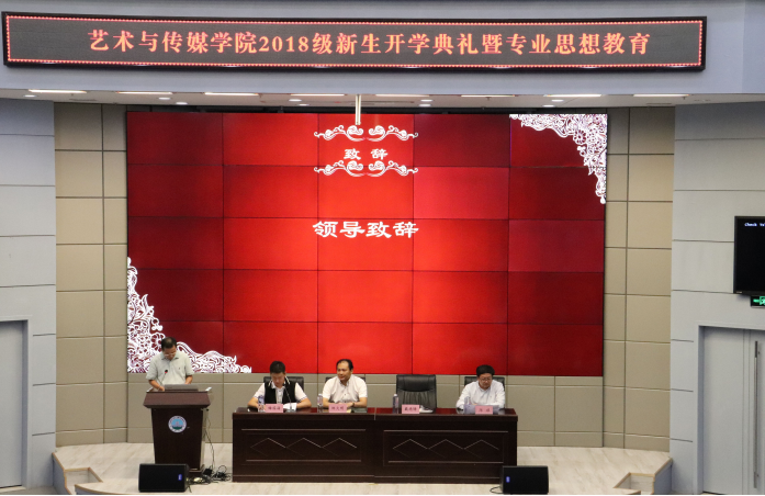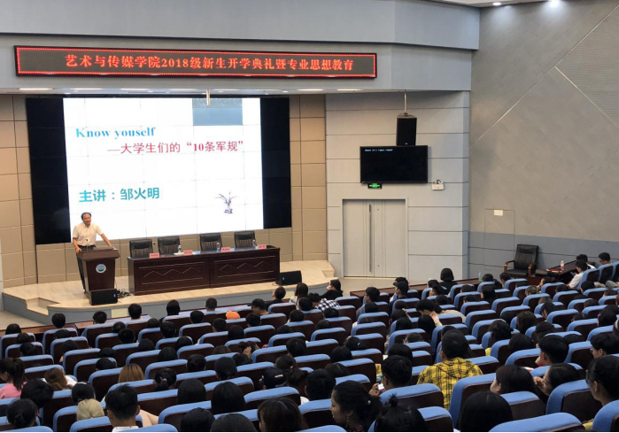 2018年9月29日晚19:00时,艺术与bevictor韦德国际学2018级本科生开学典礼在校区学术报告厅举行。艺术与传媒公司党委书记邹火明教授、常务副经理戴德铸教授、教师代表陈旗教授,2018级辅导员饶艳芹、史梦玲、赵湘以及全体2018级本科生参加大会。