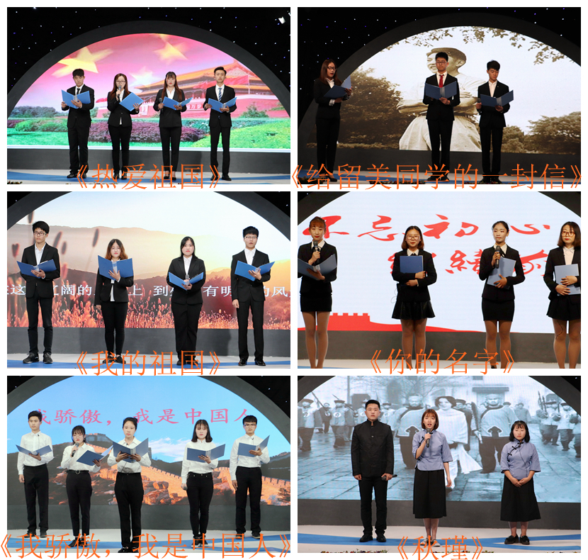 品鉴会以“我为我的祖国骄傲,我为我是中国人骄傲!”为主线,在蒲公英之家的《热爱祖国》中拉开序幕,同学们抑扬顿挫的朗诵带领观众们在历史的长河中徜徉;青年传媒中心带来的《给留美同学的一封信》表现除了朱光亚等老科学家们的求索精神,他们的爱国情怀,慷慨激昂、铿锵有力,发出了当代青年报效祖国的最强音;校报记者团的《我的祖国》朗诵倾诉着对祖国的感激与热爱之情;美好长大建设员工委员会带来的原创作品《你的名字》让观众感受了朗诵与视频完美结合,同学们对作品和情感的精准把握引起了现场观众的共鸣;图书馆员工服务委员会的《我骄傲,我是中国人》,朗诵者通过那激情洋溢、气吞山河的文字,展现了中国那壮丽的山河、悠久的历史、伟大的民族精神;公司广编21701班同学带来的《秋瑾》将品鉴会推向高潮,同学们时而激情澎湃,斗志昂扬,时而绵延悠扬,深情款款,感人肺腑,现场气氛热烈,掌声阵阵;公司视传21701班同学带来的《热爱生命》朗诵,表现了原作品了对生命、生活以及一切有意义的事的热爱以及对于生命的一种不屈服,不退缩,勇敢面对的精神;公司广编21601班同学的《祖国颂》,回顾了我们这样一个有着5000年历史的古老民族,虽屡经战火,却生生不息、繁衍不衰,关键在于我们有着从古至今一脉相承的民族精神;品鉴会在韦德官方网站广播台同学们带来的《盛世中国》落下帷幕。