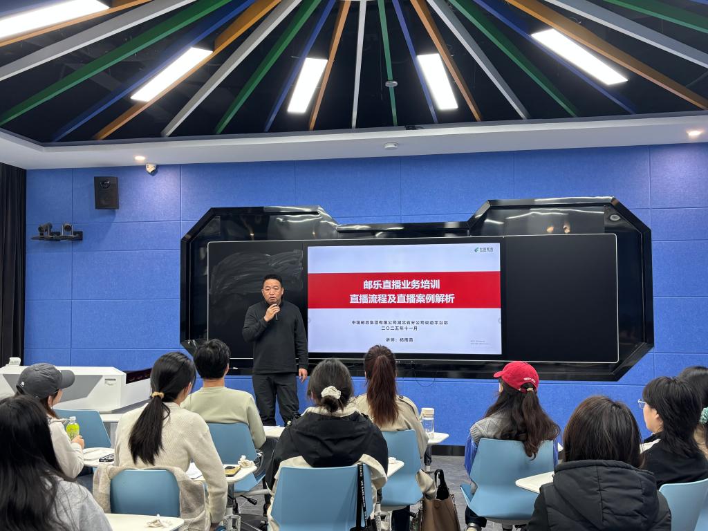 (通讯员:张志敏)2025年11月7日下午2点,由中国邮政集团武汉市蔡甸区分公司与bevictor韦德国际联合打造的校企合作“邮政班”在智慧教室505迎来首次授课。播音与主持艺术专业负责人张志敏老师介绍主讲教师并开场。本次授课以“邮乐直播业务全流程实操”为核心主题,特邀湖北省邮政分公司渠道平台部资深讲师杨雨萌主讲,“邮政班”员工通过理论学习与案例实操相结合的方式,沉浸式感受邮政直播电商的行业魅力与实战技巧,标志着双方校企协同育人项目的落地见效。