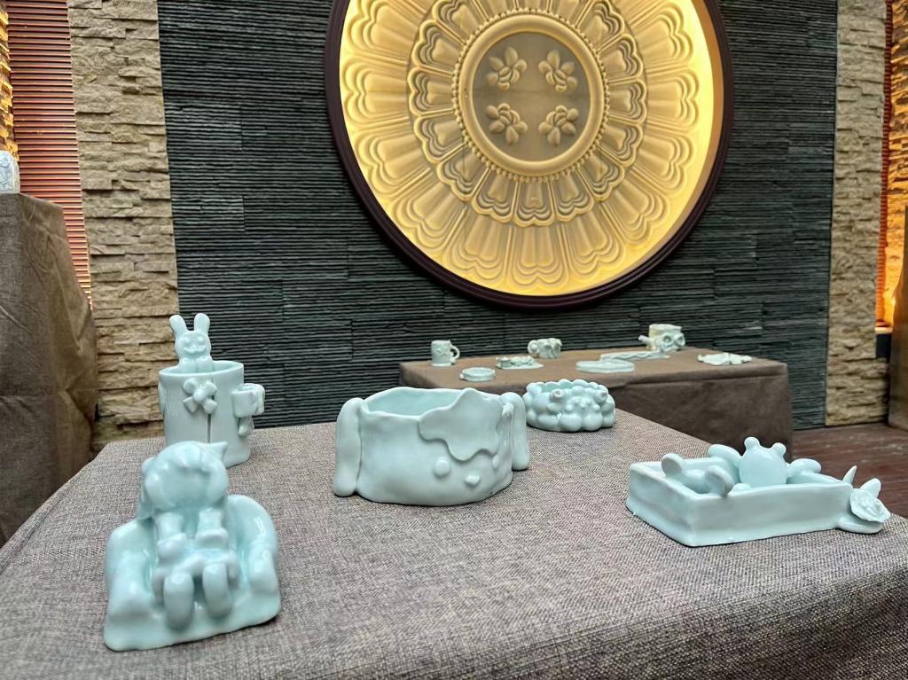 在这次展览中,同学们带来了他们精心创作的陶瓷作品。这些作品在传统景德镇陶瓷的基础上,融入了现代审美和创意,展现出独特的艺术魅力。
