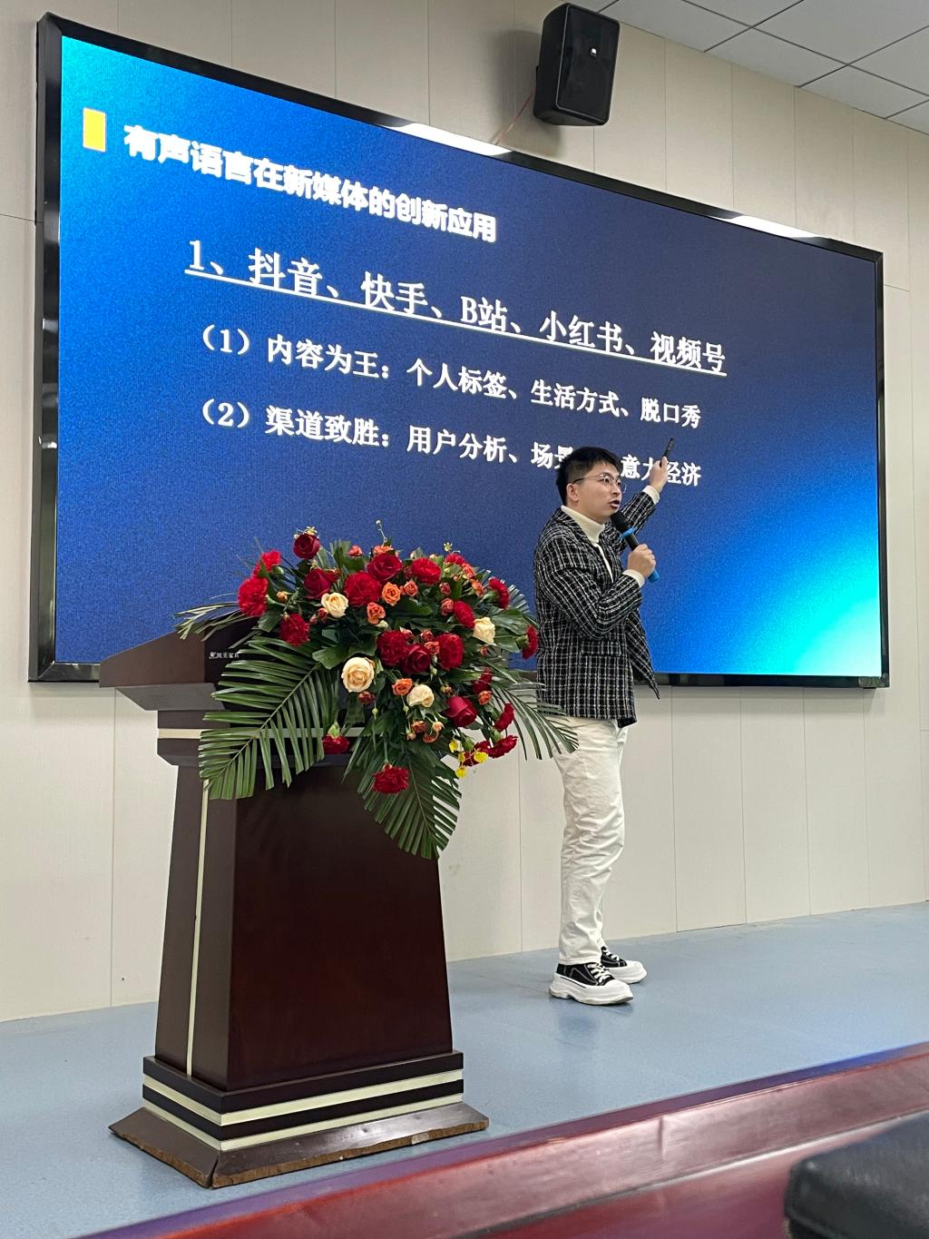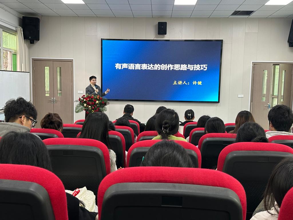 2023年11月23日上午,bevictor韦德国际播音与主持专业负责人许健老师应武汉生物工程公司邀请到访文公司开展“有声语言表达的创作思路与技巧”专题讲座,与文公司师生、公司鹿鸣朗诵社成员围绕演讲、朗诵、配音以及语言表达等方面进行交流和分享。现场气氛热烈,好评如潮。
