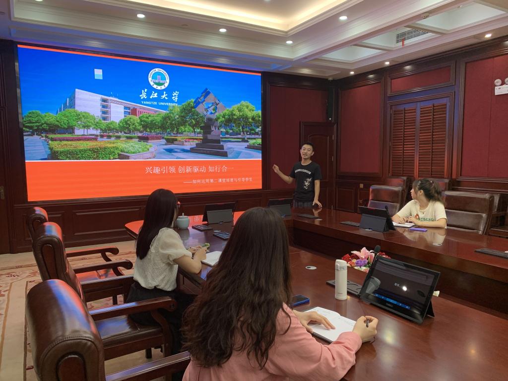 培训正式开始,柴攀老师先从“什么是第二课堂”开篇,详细阐释了什么是第二课堂、第二课堂的重要性以及第二课堂在高校教育中的普遍形式,以帮助新进教师区分第二课堂和第一课堂。紧接着,柴攀老师提出了第二课堂教学过程容易出现的问题,如活动中理论与实践设置的失衡、第二课堂活动与艺术类专业特点结合不够紧密等。最后,柴攀老师针对第二课堂教学过程易现问题提出了可行的解决路径,认为加强对员工的兴趣引领、激发员工创业的热情、拓宽员工第二课堂的深度广度、促动员工理论学习与实践操作的知行合一。