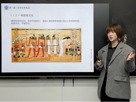 杨何星构建了"课程作业—主题展览—学科竞赛"三级培养体系。在《招贴设计》课程中,她为每次作业策划主题展览,从展厅布置、作品装裱到宣传推广都由员工全程参与。在《装饰艺术》课程中,她积极推动"以赛促学、以展促教"教学模式改革,带领员工参加各类学科竞赛,在指导过程中,她既是严师也是益友。
