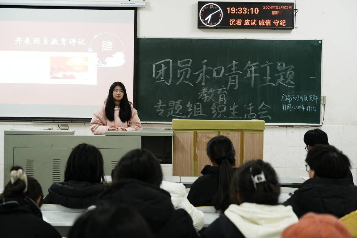 首先,各团支部书记报告团员和青年主题教育开展情况并寻找自身的不足。会议进行期间,各班团员端正自身,积极聆听团支书的报告总结,展示了公司学子积极参与团学教育活动和积极向党组织靠拢的精神风貌。播音32302班团支书胡雨萌在会议中提到:“我们要强化组织观念,严守组织纪律,加强各团支部的自身建设,在会议中,我们的目的是找出问题并解决问题、共同进步。”