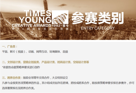 时报金犊奖(以下简称:金犊奖)创办于1992年,创办之初,以庄子·知北游篇「初生之犊, 不畏虎」之意,鼓励青年,勇敢表现自己。作为全球华文创意重要竞赛之一,迄今为止是全球华人历史悠久、覆盖广、规模大、参与人数多、作品水准高的公益类创意竞赛。金犊奖首创策略单教学模式,以实战性教学,与市场接轨。