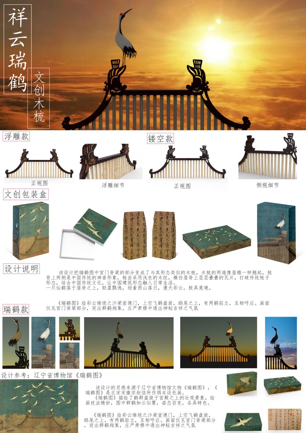 产品设计作品:《祥云瑞鹤文创木梳》-金其怡